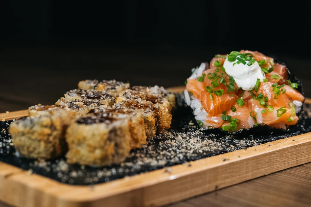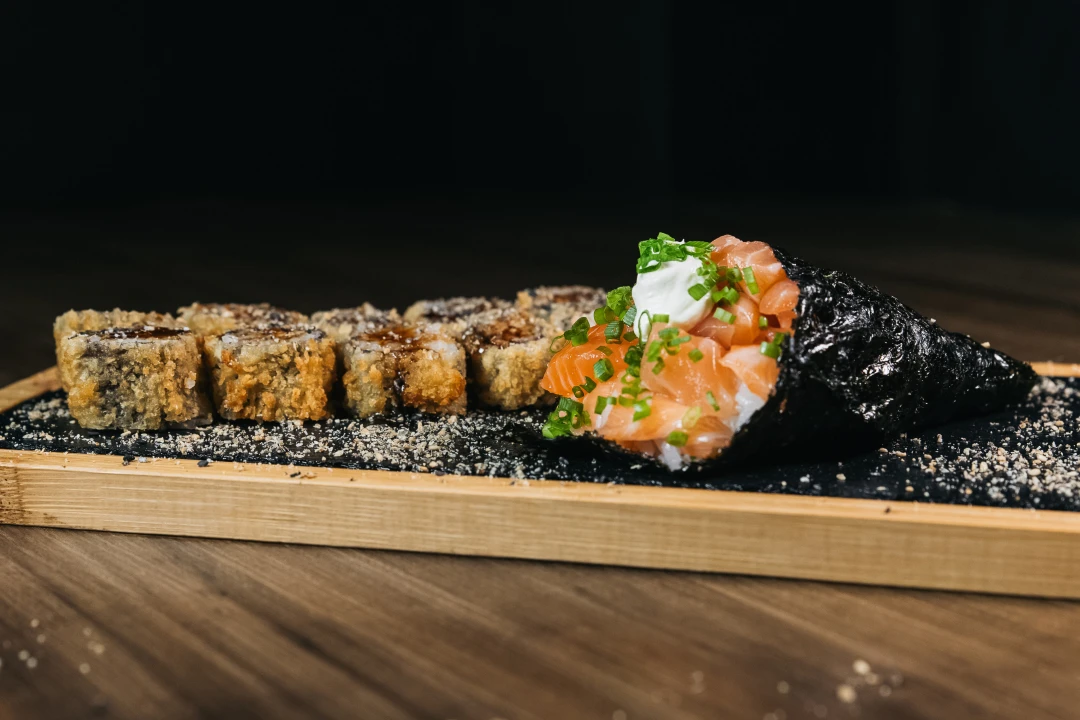 A companhia ideal para sua noite, combinamos um generoso Temaki Philadelphia, recheado com cream cheese e salmão fresco em cubos e 10 peças de Hot Philadelphia crocantes e bem recheadas.