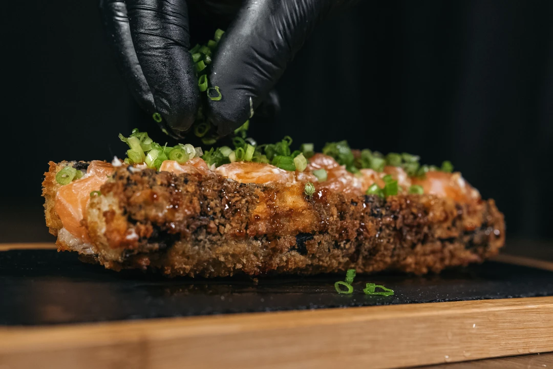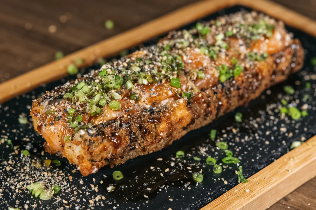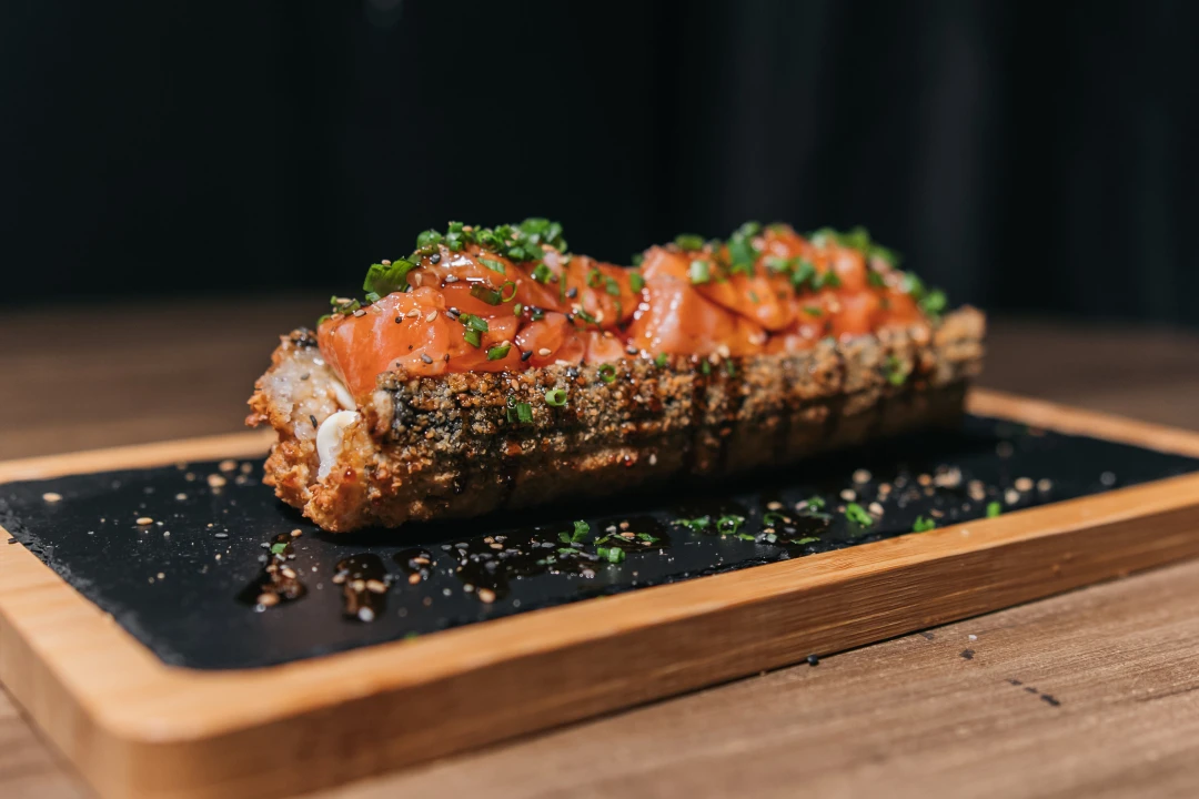 • recheado com cubos frescos de salmão