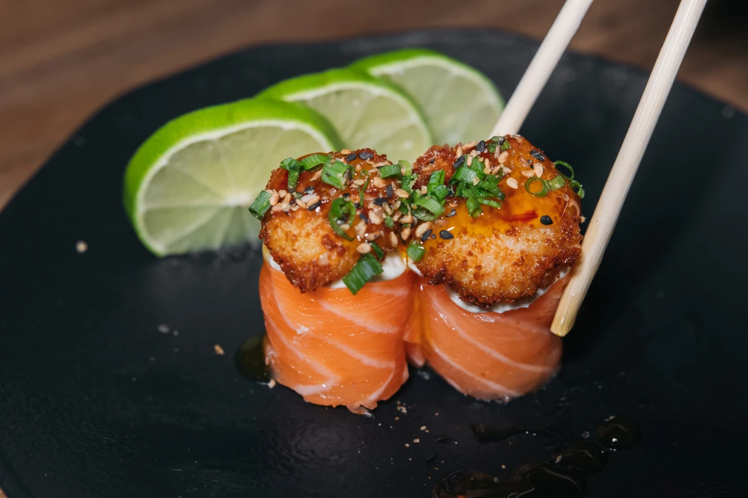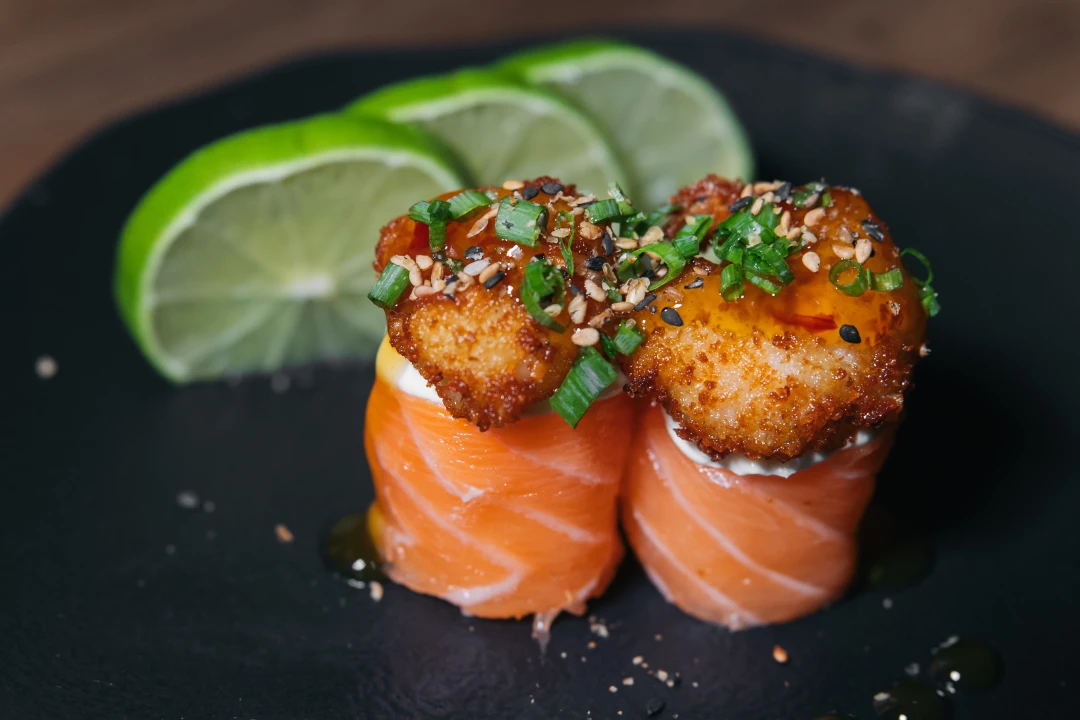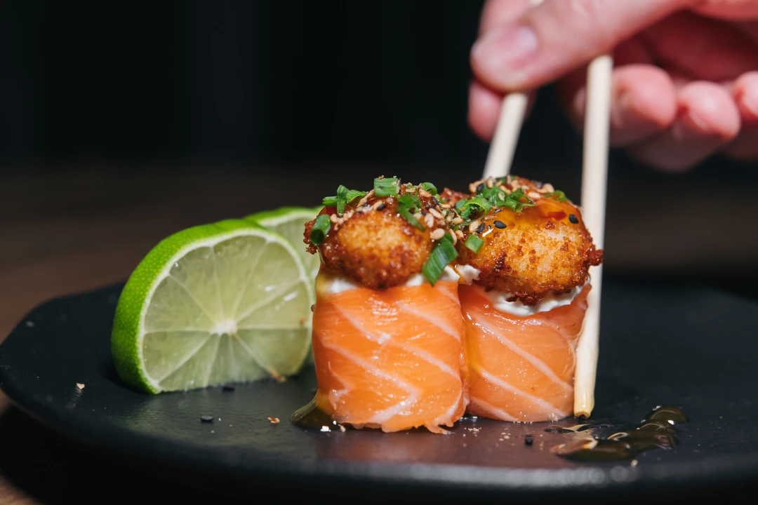 Envolvido por uma lâmina de salmão fresco coberto por um saboroso e suave cream cheese e finalizado com cebola crispy. Peça essa duplinha de alegria!